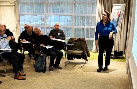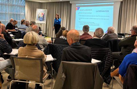 Illustration : Frédérique Villalon à Clermont Ferrand le 21 novembre. Commentaire de Bernard Chaussade, président de la cce d'Auvergne : "La journée s'est déroulée dans d'excellentes conditions grâce à la compétence et à la maîtrise de l'intervenante".